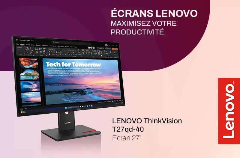 Explorez la gamme d’écrans Lenovo ThinkVision, conçue pour offrir qualité d’image, ergonomie et connectivité aux environnements modernes.